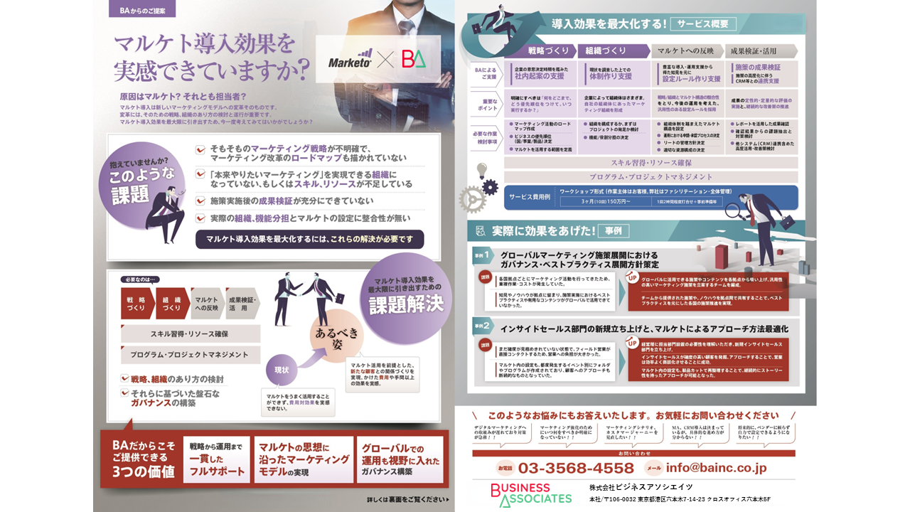 BAではMarketoの導入効果を最大化するためのサービスを提供しています。